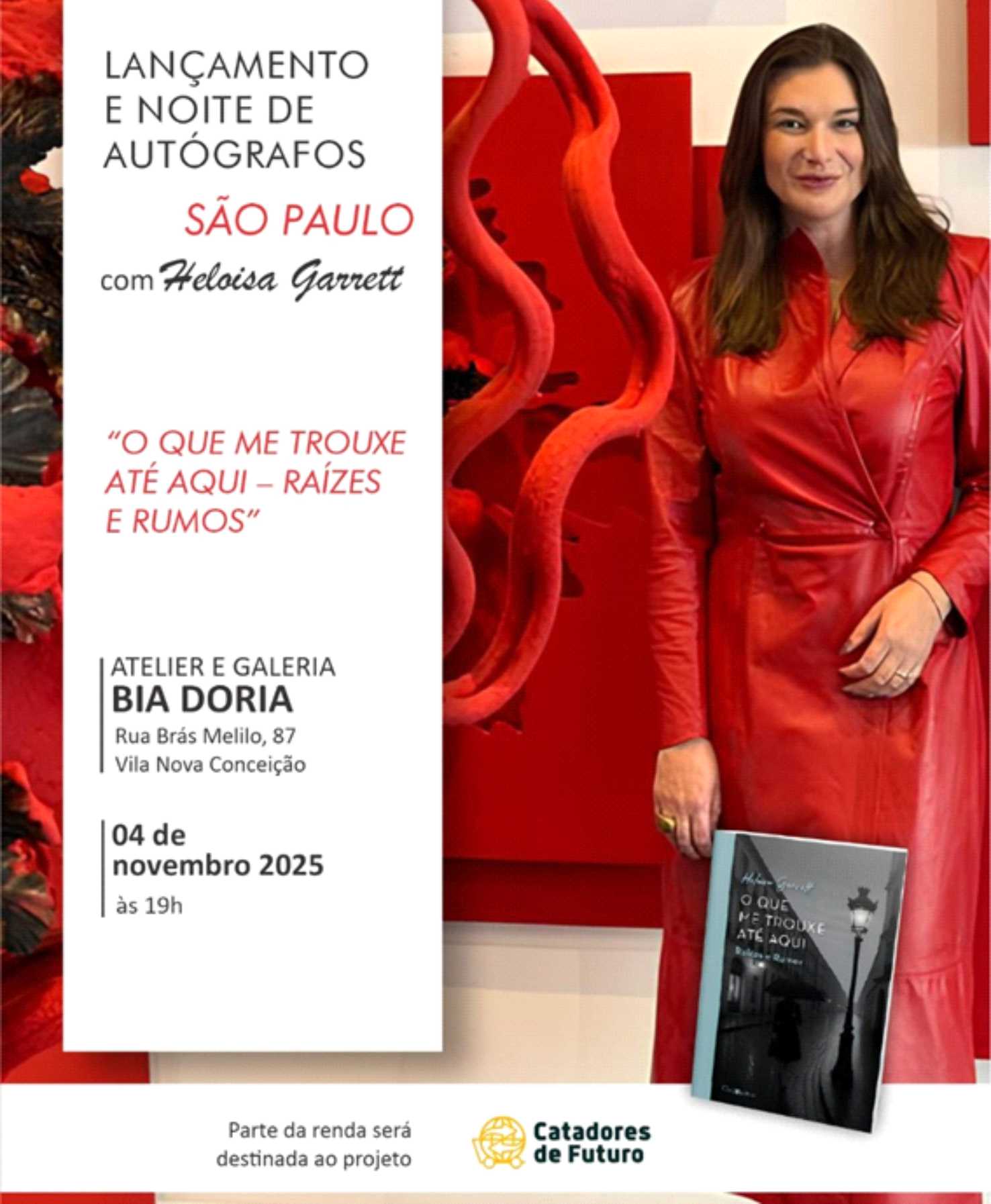 No próximo dia 4 de novembro, a empresária e escritora Heloisa Garrett lança o livro “O que me trouxe até aqui – Raízes e Rumos”, no prestigiado Ateliê Bia Dória, em São Paulo. A noite de autógrafos faz parte de um verdadeiro percurso literário que teve início em Curitiba, passou pelo Consulado brasileiro em Nova York, Rio de Janeiro e, depois de São Paulo, percorrerá outras cidades pelo Brasil.