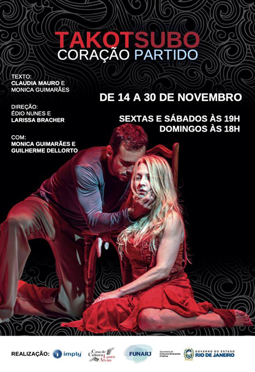 “Takotsubo, Coração Partido” chega à Casa de Cultura Laura Alvim, em Ipanema, em curtíssima temporada, de 14 a 30 de novembro, com sessões nas sextas e sábados, às 19h, e domingos, às 18h. Com dramaturgia de Monica Guimarães e Claudia Mauro, a peça retrata a história de uma mulher de classe média alta da zona sul carioca que enfrenta, desde a sua infância, silêncios profundos, cicatrizes invisíveis e uma sucessão de rupturas emocionais. Ao longo de sua jornada marcada por afetos adoecidos e relações abusivas, numa luta árdua pela sua integridade emocional e física, a protagonista vivida por Monica acaba sucumbindo ao esgotamento extremo proveniente de profundo estresse. Estresse extremo, que literalmente parte o seu coração. Diagnosticada com a Síndrome de Takotsubo, também chamada de “Síndrome do Coração Partido”, ela mergulha em uma experiência de quase morte, atravessando um coma permeado por reflexões intensas, onde seu passado é revisitado em um turbulento acerto de contas.