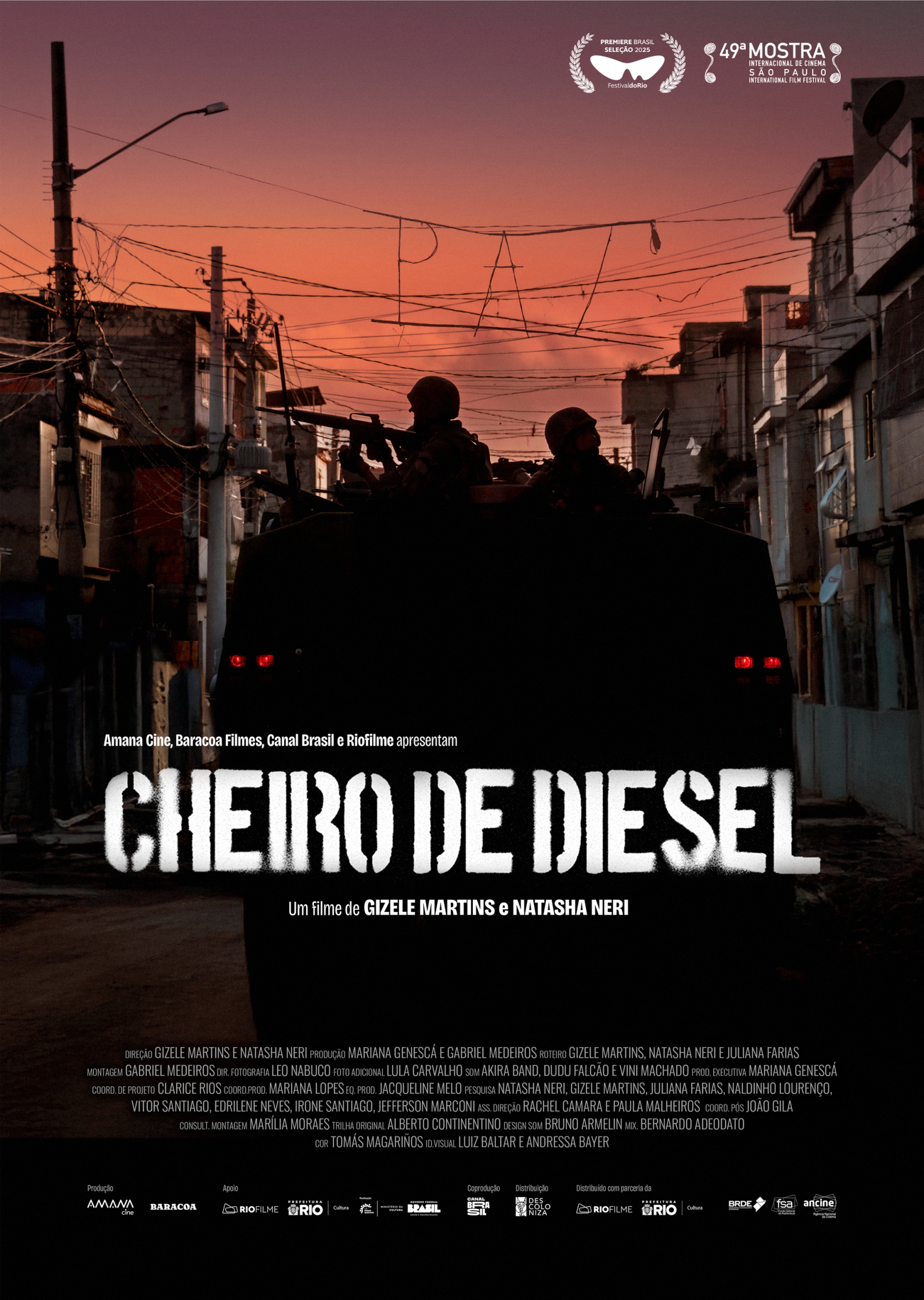 CHEIRO DE DIESEL retrata os traumas coletivos da militarização das favelas do Rio de Janeiro ocupadas pelas Forças Armadas durante os megaeventos esportivos. A partir de vozes de dentro das favelas, o filme documenta a luta por justiça e reparação de vítimas de violações de direitos humanos.