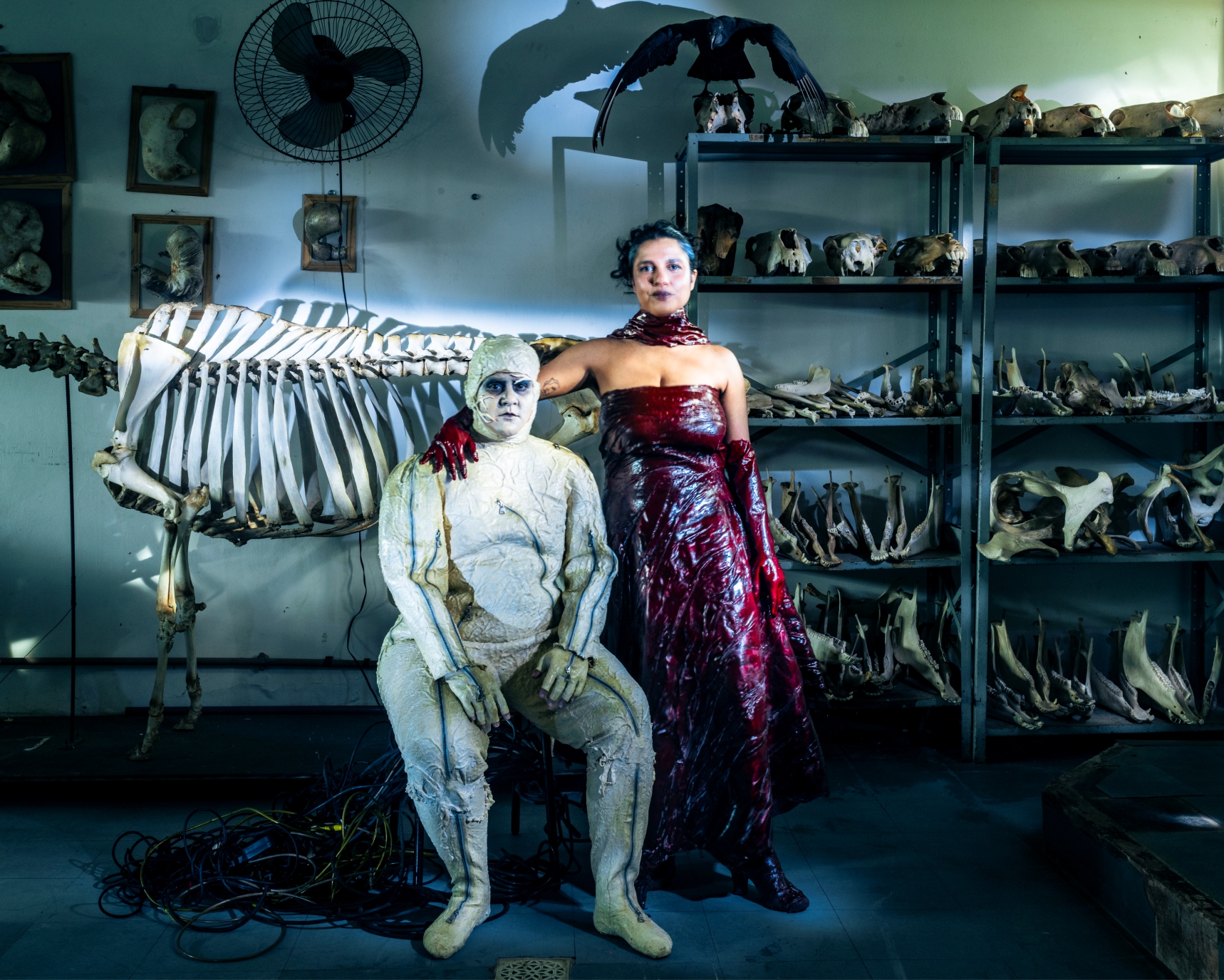 A dramaturgia, escrita por Fernando de Carvalho, parte de dois mitos complementares: o da criatura feita de fragmentos de corpos e o de uma jovem autora que, aos 18 anos, inventou um novo gênero literário. Em cena, as atrizes Ana Quintas e Larissa Souza borram as fronteiras entre criadora e criatura, fazendo com que Mary Shelley seja, ao mesmo tempo, autora, personagem e parte do mito que criou.
